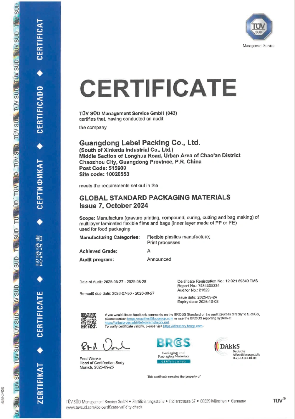 Yes, all of our material is food grade, and we have passed ISO, SGS, BRC, HACCP, ROHS, and QS testing.