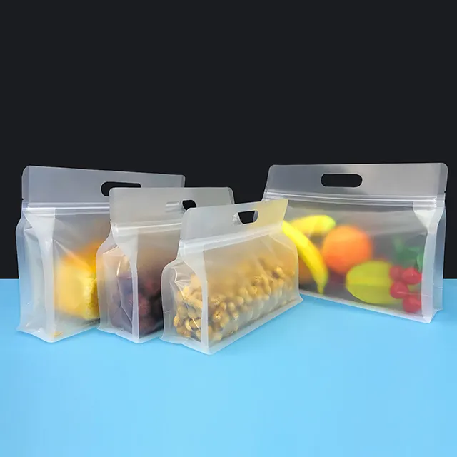 Wholesale Flat Bottom Pouch with Zipper and Handle (pochette à fond plat avec fermeture éclair et poignée) Matte & Transparent Finish (finition mate et transparente)