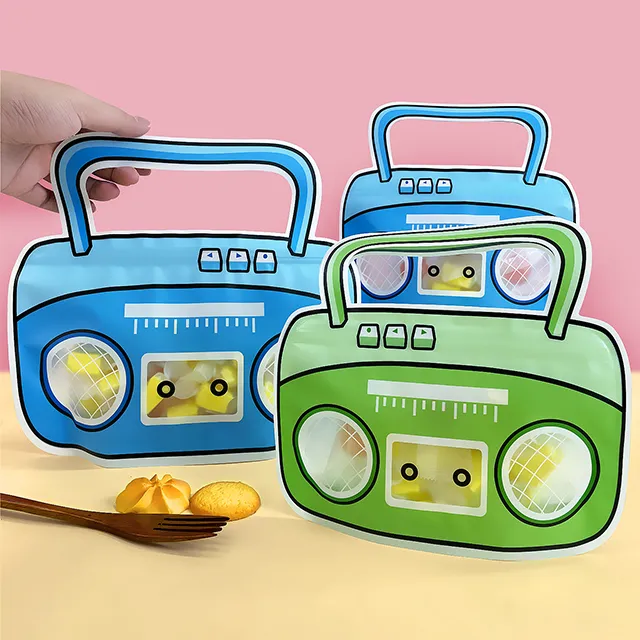 The bag shape can be designed as Schoolbag, radio, handbag, camera and other special images, which are suitable for children’s snacks and gift packaging, and have more visual impact on the shelf.